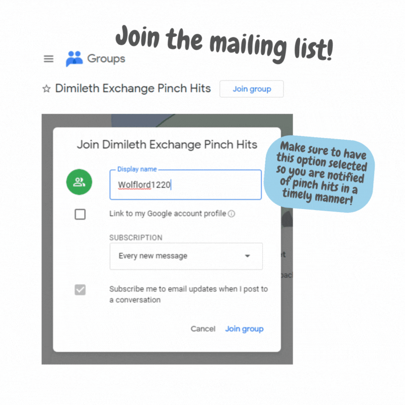 If a work requires a pinch hit, we will post details about the request in the mailing list and an email will be sent to all users in the mailing list.